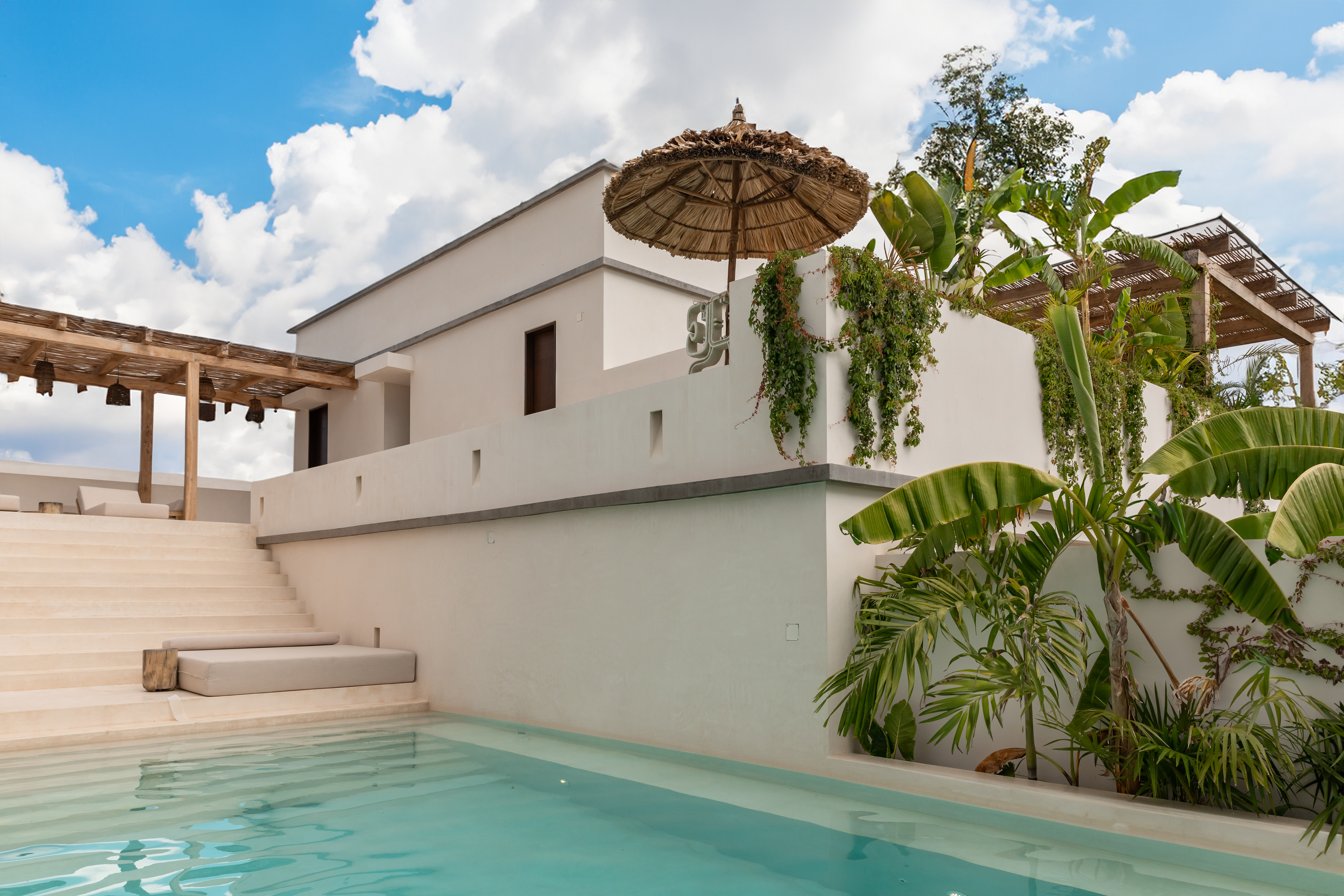 Relájate y socializa en nuestro oasis junto a la alberca, un espacio donde podrás disfrutar de impresionantes vistas al atardecer mientras te sumerges en una atmósfera de tranquilidad.