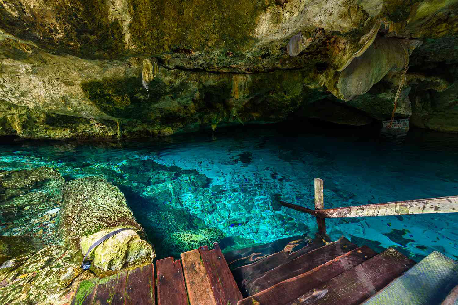 Sumérgete en aguas cristalinas, explorando cuevas fascinantes y piscinas sagradas ocultas bajo la superficie.